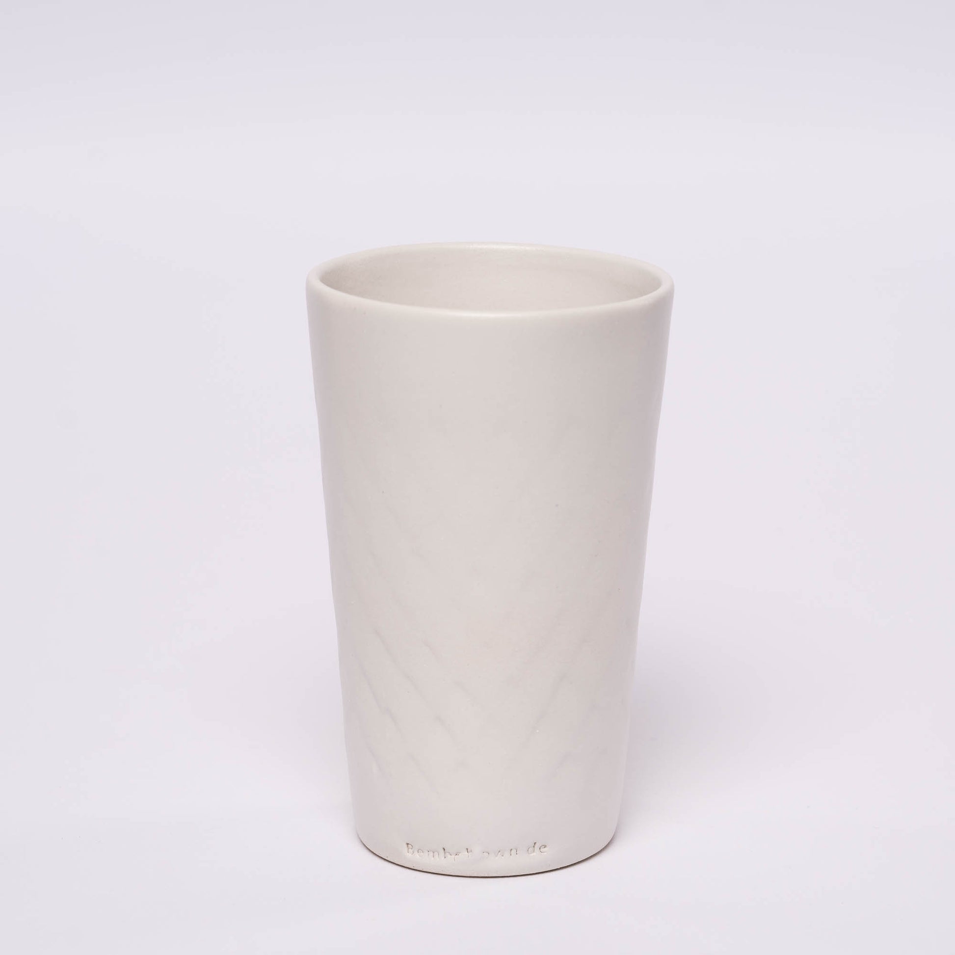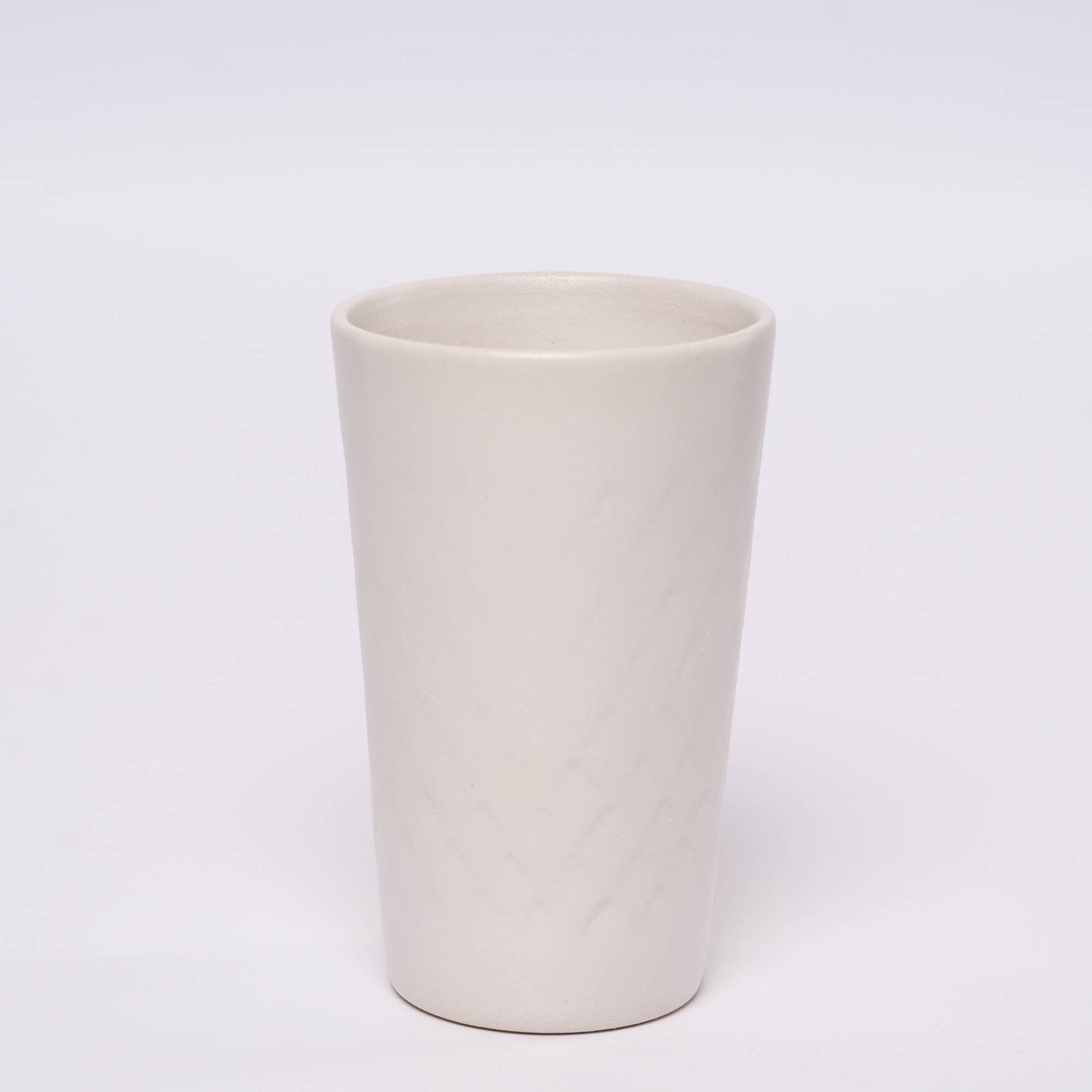 Der original Frankfurter Äppelwoibecher in weiß matt, aus hochwertigem Steinzeug. Alle Apfelweinbecher sind rundum mit dem klassischen Rautenmuster versehen.
